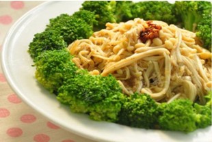 Broccoli mushroom garlic a tablespoon salt 1 teaspoon sugar, a teaspoon of chicken a teaspoon pepper and a teaspoon of vinegar and a tablespoon of soy sauce a teaspoon of sesame oil a few drops of chili oil amount (can be put to hold)
