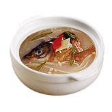 3,pour in the water (at the end over the head 2 cm high), the fire and cook until seven minutes, the foam will be dishing out soup (this soup can be more white spots), pour the mushroom to turn the heat and simmer 5 minutes.